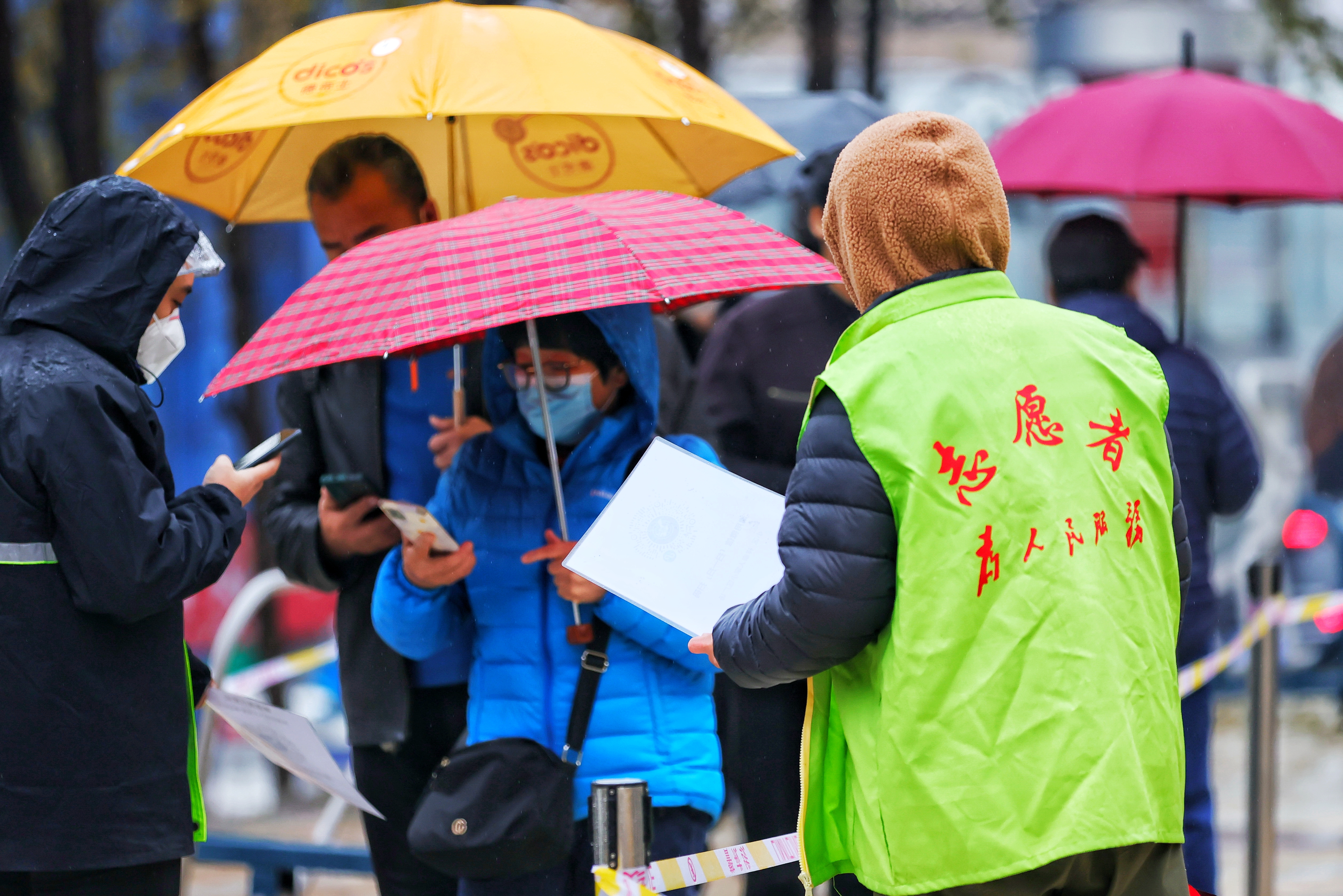 雨中的志愿者背影