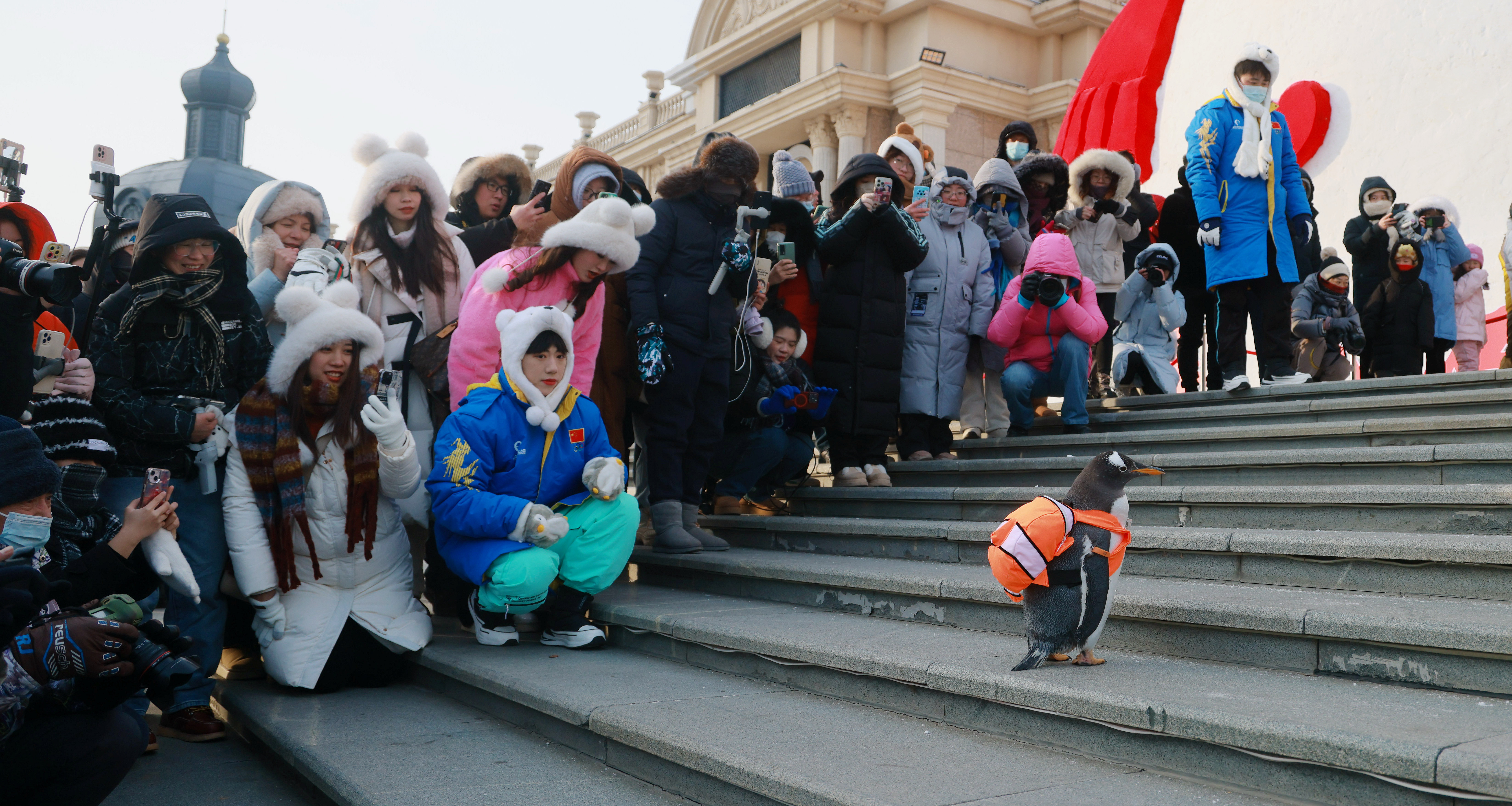 五彩斑斕的“小公主”們和“小金豆”們徜徉在大街小巷,手里的哈爾濱紅腸、馬迭爾冰棍、尹胖子油炸糕,為這個(gè)冬天增添了別樣的韻味。中央大街、紅專街早市、道里菜市場人流熙攘,冰雪大世界、雪鄉(xiāng)、亞布力滑雪場、漠河等地“熱雪沸騰”,酒店和澡堂里一排排行李箱拉滿氛圍,淘學(xué)企鵝憨態(tài)可掬、大雪人溫暖治愈,萬人大蹦迪、超級(jí)冰滑梯、潑水成冰……勾勒出一幅幅風(fēng)情絕美的“北國畫卷”。