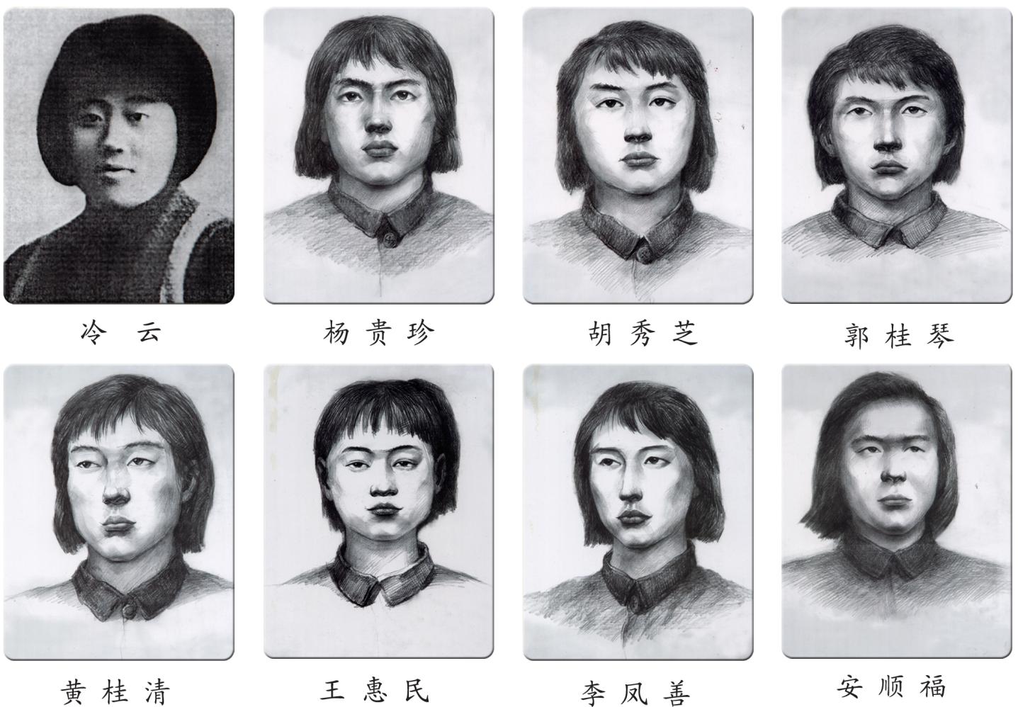請(qǐng)記?。核齻兪枪伯a(chǎn)黨員、抗聯(lián)二路軍五軍婦女團(tuán)指導(dǎo)員冷云,共產(chǎn)黨員、五軍婦女團(tuán)班長(zhǎng)楊貴珍、胡秀芝,五軍婦女團(tuán)戰(zhàn)士郭桂琴、黃桂清、王惠民、李鳳善(朝鮮族)和二路軍第四軍共產(chǎn)黨員、被服廠廠長(zhǎng)安順福(朝鮮族)。