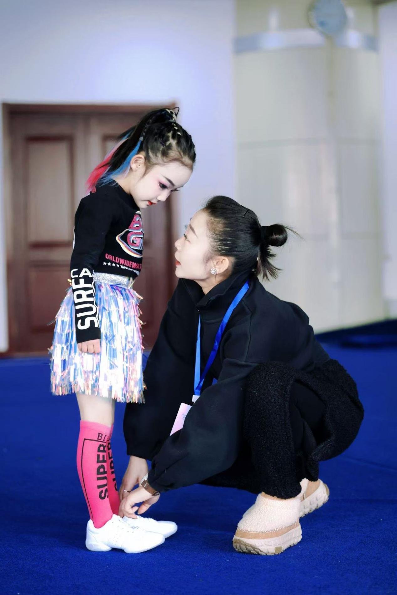 2017年8月,申忱正式入職哈爾濱市繼紅小學(xué),同年9月便牽頭成立了“颯娃啦啦隊(duì)”。彼時(shí)的社團(tuán),沒有成熟的訓(xùn)練體系,沒有豐富的參賽經(jīng)驗(yàn),甚至連固定的訓(xùn)練場地都需臨時(shí)協(xié)調(diào),訓(xùn)練和上課時(shí)間屢屢受限,前行之路布滿荊棘。但申忱從未動搖,她堅(jiān)信啦啦操的力量,“啦啦操不僅是一項(xiàng)融合舞蹈、技巧的體育運(yùn)動,更是培育孩子自信、團(tuán)結(jié)與堅(jiān)韌的重要載體,它所傳遞的‘更高、更快、更強(qiáng)、更團(tuán)結(jié)’的奧林匹克精神,能讓孩子們受益終身,這也正是學(xué)校大力發(fā)展體育教育的初心?!?/p>